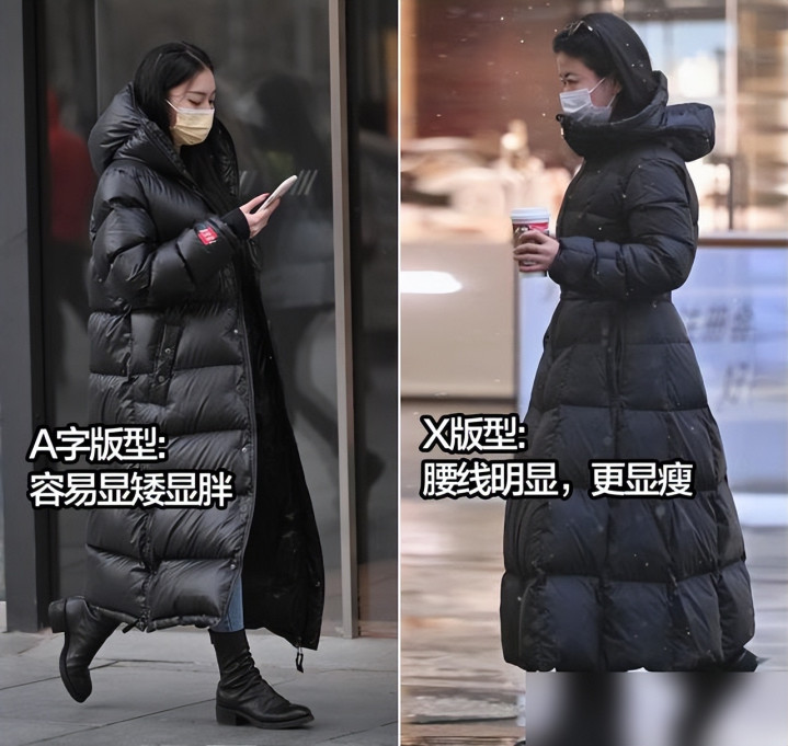 长款羽绒服别乱穿,带收腰设计的X版型最显瘦,否则真像裹着棉被出门。