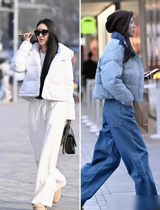咱们总怕羽绒服显胖,可人家用长裤一搭,立马解决臃肿问题。