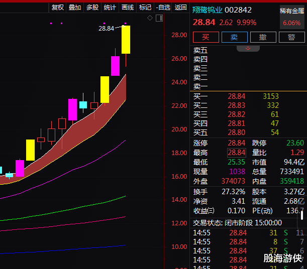 从技术面上来看,翔鹭钨业(002842)该股在板块的带动下,走出了3天2板!均线呈现多头排列,MACD继续走强,主力资金呈现流出状态。