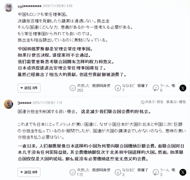 这番表态迅速引发热议,日本舆论场炸开了锅,甚至有人扬言:“既然联合国不欢迎我们,那我们就退出好了!”还有人喊出:“交了那么多会费,居然还不让我们说话?不交了,看你们怎么办!”